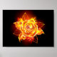 Blühende Rose aus Feuer und Flamme auf schwarzem Hintergrund.