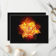 Blühende Rose aus Feuer und Flamme auf schwarzem Hintergrund.
