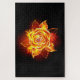Blühende Rose aus Feuer und Flamme auf schwarzem Hintergrund.