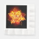 Blühende Rose aus Feuer und Flamme auf schwarzem Hintergrund.