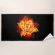Blühende Rose aus Feuer und Flamme auf schwarzem Hintergrund.