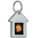 Blühende Rose aus Feuer und Flamme auf schwarzem Hintergrund.