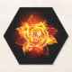 Blühende Rose aus Feuer und Flamme auf schwarzem Hintergrund.