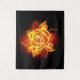 Blühende Rose aus Feuer und Flamme auf schwarzem Hintergrund.