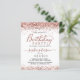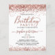 Budget Moderne stilvolle Rosa Gold Sparkle Glitzer Weißer Geburtstag Einladung. Dieses billige elegante beliebte weibliche mädchenhafte Geburtstagsgeschenk-Vorlage mit einem trendigen handgeschriebenen Schriftart-Kalligraphie mit rot rosa Rosa Glitzer Schwanz Rahmen auf weißem Hintergrund. Perfekt für jedes Alter (16., 18., 21., 30., 40., 50., 60. 70. und sechzehn, achtzehn, zwanzig ein, dreißig, vierzig, fünfzig, sechzig oder siebzig etc..) Rose Gold Geburtstagsparty. Wenn Sie Hilfe oder Match-Artikel benötigen, kontaktieren Sie mich bitte.