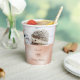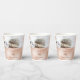 Im oberen Teil befindet sich ein Foto eines niedlichen Igels. Im unteren Teil befindet sich ein goldfarbenes Textfeld der Rose mit einem benutzerdefinierten Geburtstagstext. Elegante niedliche Geburtstag-Papiertassen.