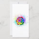 Große, blühende Rose mit Regenbogenblüten auf weißem Hintergrund, überstrichen mit farbenfrohen, hellen Farbtupfern. 3d