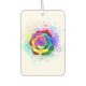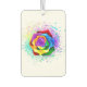 Große, blühende Rose mit Regenbogenblüten auf weißem Hintergrund, überstrichen mit farbenfrohen, hellen Farbtupfern. 3d