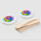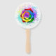 Große, blühende Rose mit Regenbogenblüten auf weißem Hintergrund, überstrichen mit farbenfrohen, hellen Farbtupfern. 3d