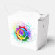 Große, blühende Rose mit Regenbogenblüten auf weißem Hintergrund, überstrichen mit farbenfrohen, hellen Farbtupfern. 3d