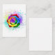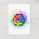 Große, blühende Rose mit Regenbogenblüten auf weißem Hintergrund, überstrichen mit farbenfrohen, hellen Farbtupfern. 3d