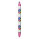 Große, blühende Rose mit Regenbogenblüten auf weißem Hintergrund, überstrichen mit farbenfrohen, hellen Farbtupfern. 3d