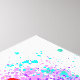 Große, blühende Rose mit Regenbogenblüten auf weißem Hintergrund, überstrichen mit farbenfrohen, hellen Farbtupfern. 3d