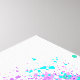 Große, blühende Rose mit Regenbogenblüten auf weißem Hintergrund, überstrichen mit farbenfrohen, hellen Farbtupfern. 3d