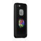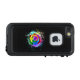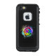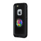 Große, blühende Rose mit Regenbogenblüten auf weißem Hintergrund, überstrichen mit farbenfrohen, hellen Farbtupfern. 3d