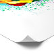 Große, blühende Rose mit Regenbogenblüten auf weißem Hintergrund, überstrichen mit farbenfrohen, hellen Farbtupfern. 3d