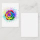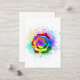 Große, blühende Rose mit Regenbogenblüten auf weißem Hintergrund, überstrichen mit farbenfrohen, hellen Farbtupfern. 3d