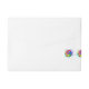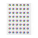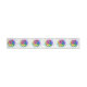 Große, blühende Rose mit Regenbogenblüten auf weißem Hintergrund, überstrichen mit farbenfrohen, hellen Farbtupfern. 3d
