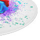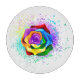 Große, blühende Rose mit Regenbogenblüten auf weißem Hintergrund, überstrichen mit farbenfrohen, hellen Farbtupfern. 3d