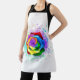 Große, blühende Rose mit Regenbogenblüten auf weißem Hintergrund, überstrichen mit farbenfrohen, hellen Farbtupfern. 3d