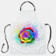 Große, blühende Rose mit Regenbogenblüten auf weißem Hintergrund, überstrichen mit farbenfrohen, hellen Farbtupfern. 3d