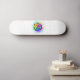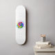 Große, blühende Rose mit Regenbogenblüten auf weißem Hintergrund, überstrichen mit farbenfrohen, hellen Farbtupfern. 3d
