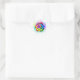 Große, blühende Rose mit Regenbogenblüten auf weißem Hintergrund, überstrichen mit farbenfrohen, hellen Farbtupfern. 3d