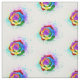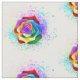 Große, blühende Rose mit Regenbogenblüten auf weißem Hintergrund, überstrichen mit farbenfrohen, hellen Farbtupfern. 3d