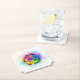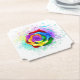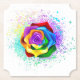 Große, blühende Rose mit Regenbogenblüten auf weißem Hintergrund, überstrichen mit farbenfrohen, hellen Farbtupfern. 3d