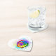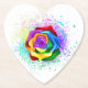 Große, blühende Rose mit Regenbogenblüten auf weißem Hintergrund, überstrichen mit farbenfrohen, hellen Farbtupfern. 3d