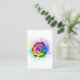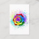 Große, blühende Rose mit Regenbogenblüten auf weißem Hintergrund, überstrichen mit farbenfrohen, hellen Farbtupfern. 3d
