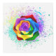 Große, blühende Rose mit Regenbogenblüten auf weißem Hintergrund, überstrichen mit farbenfrohen, hellen Farbtupfern. 3d