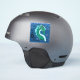 Blaues, grünes und aquamarines Drachenprofil mit Schneefall. Schwarze Rose des Stammes.