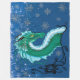 Blaues, grünes und aquamarines Drachenprofil mit Schneefall. Schwarze Rose des Stammes.