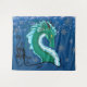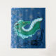 Blaues, grünes und aquamarines Drachenprofil mit Schneefall. Schwarze Rose des Stammes.