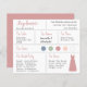 Eine staubige Rose (pink) überbrückte Informationskarte, die Informationen über das Hochzeitstermin und den Ort, die Hochzeitsfarben, das Brautparty, das Brautkleid und eine Bräunungsmitteilung enthält. In der oberen links Ecke wird der Name der Brautjungfrau in einer staubigen Rose-Handschrift geschrieben. In der unteren rechten Ecke befindet sich ein staubiges Kleid für Rose. In der Mitte sind die Hochzeitsfarben in Kreisen. Die Standardfarben sind staubblau, sage grün, staubige Rose, rot-weiß. Die Farben, einschließlich der Farbe des Hochzeitskleides, können geändert werden.