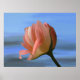 Eine hübsche, bemalte, pfirsichfarbene Rose, die sich in Richtung eines blauen Himmels öffnet, ist die Gerste.