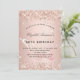 Für eine elegante 50. Geburtstagsfeier (oder jedes Alter). Eine Rose goldener Hintergrund. Dekoriert mit Rose Gold Imitat Glitzer und einem großen Schmetterling. Personalisieren und fügen Sie einen Namen und Party-Details hinzu. Der Name wird mit einem handgeschriebenen Stilskript geschrieben
