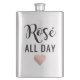 Stilvolle "Rosé All Day" Trinkflasche in modernem schwarzen Drehbuch mit Rose goldenem Herz.