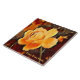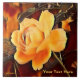 Eine stilisierte Darstellung einer gelb-orangefarbenen Rose auf dunkelrotem und orangefarbenem Hintergrund. Fügen Sie Ihren eigenen Text hinzu.