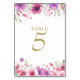 Mit feinen Aquarellfarben-Rose über und unter Ihren personalisierten Tischnummern in schicker Schrift. Entwickelt von Thisisnotme©