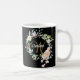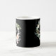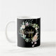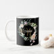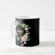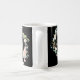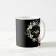 Hübsche Monogramm-Tasse, mit einem schönen weißen Skriptnamen mit einem vergoldeten Initial, der durch eine zarte Aquarellgarland mit blühender Rose auf schwarzem Hintergrund gerahmt ist. Personalisieren Sie sich, um ein besonderes Geschenk zu erhalten! Entwickelt von Thisisnotme©