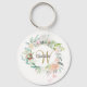 Hübscher Monogramm-Schlüsselanhänger mit einem schönen Skriptnamen, der einen Goldvorschuss enthält, der durch eine zarte Aquarellgarage mit blühender Rose gerahmt ist. Personalisieren Sie sich, um ein besonderes Geschenk zu erhalten! Entwickelt von Thisisnotme©