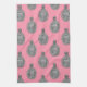 Küchen oder Bar Handtuch mit Blumenflaschen auf einer Rose rosa Hintergrund. Inspiriert von einigen der extravaganten angesagten Flaschen der Verbotszeit, in den Zeiten der sprechlichen.