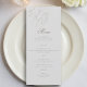 Set den Ton für deine traditionelle Hochzeit in der Krawatte mit diesem formalen Elfenbeinmenü, das exquisite, handgezeichnet Rose mit einem realistischen Imitat-Prägung über einen weichen, strukturierten, mittelfarbigen, elfenbeinfarbenen Hintergrund bietet. Das raffinierte Layout verbindet moderne Typografie mit klassischer Eleganz und schafft eine zeitlose und raffinierte Präsentation für Ihr Abendessen und Ihre Getränkeauswahl. Die dezente Doppelgrenze verleiht dem Ganzen eine glänzende Optik, während das romantische Kunstwerk der Rose die klassische Hochzeitsarbeit und das formelle Dekor der Hochzeitsfeier ergänzt. Diese personalisierte Speisekarte für Elfenbein, die sich perfekt für Paare eignet, die eine schwarze Krawatte, einen traditionellen oder formellen Hochzeitsempfang planen, passt sich nahtlos zur Suite Formal Classic Ivory Rose an und sorgt für ein einheitliches und elegantes Ambiente während Ihres Aufenthalts.