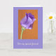 Hübsche, gut sortierte Karte mit einer üppigen lila Rose auf einem warmen Hintergrund. Sie können sich mit Ihrer eigenen speziellen Nachricht personalisieren und auch Ihr eigenes Foto hochladen. Koordinierungsplatte und Magnet vorhanden. Foto ©Christine Greenspan