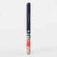 Dieses Handy-Gehäuse zeichnet sich durch ein modernes Aquarell-Blumendesign mit rosa und korallenfarbenen Blume, Blattwerk, Imitat Rose Gold Glitzer und Monogramm auf einem marineblauen Hintergrund aus. Personalisieren Sie es mit einem ersten.