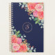 Dieser personalisierte Planer zeichnet sich durch ein modernes, florales Aquarell-Design mit Korallen und rosa Blume, Blattwerk und Imitate Rose Gold Glitzer mit Monogramm auf marineblau Hintergrund aus. Personalisieren Sie den Text mit Ihrem ersten.