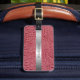 Rose rosa Lederhintergrund. Personalisierte Vorlagen auf einem Imitat silbermetallices Etikett vorne und hinten.
