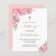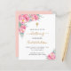 Weiße, mit rosa Blumen geschmückte Dekoration. Personalisieren und die Kinder Name und Zeremonie Details. Schwarze und goldfarbene Buchstaben. Zurück: Farbe des Hintergrund rot.